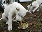 Moving on we can see that the esophagus is a muscular organ that moves food down to the very elastic stomach which has numerous folds (11) that allow it to expand as well as contract to help pulverize the foods while the strong stomach acids and enzymes work to break down the meat into the proper composition for assimilating all the nutrients. Carnivores have a particularly acidic stomach environment with a PH of 1-2 and strong Hydrochloric Acid that breaks down meat as well as kills harmful bacteria. Any bad bacteria that does survive is passed through a carnivore’s digestive tract quickly, in a matter of hours, before it can cause any problems unless the dog is being fed inappropriate food items that slow up the digestive rate, such as grains or vegetables. The digestive tract of a carnivore is by design, shorter than an omnivore or herbivore, so that the digestion can be completed relatively quickly. The waste that a raw fed carnivore excretes is typically of a small amount, is firm and dense, it quickly dries up and decomposes, returning to the earth to complete the cycle of life. If you do not handle the excrement you will never have a problem with contamination. If desired the waste is easily picked up and removed.